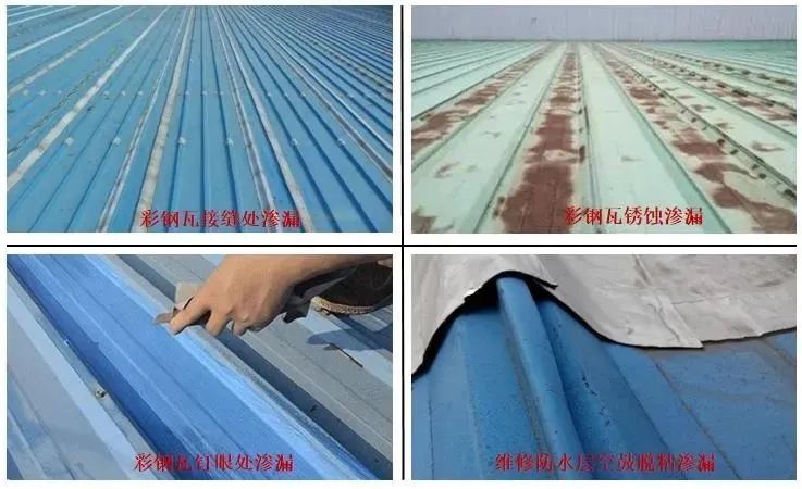 彩鋼屋面是屋面的一種,因為其造價成本低,安裝方式便捷,深受廠房及普通加建房的廣泛使用,因為其本身屬性長期暴露在室外,受外界因素影響,時間久了,固定彩鋼的鉚釘、彩鋼板搭接處及與土建結構的交界處會出現不同程度的漏水點,嚴重時,室內出現大面積漏水現象。