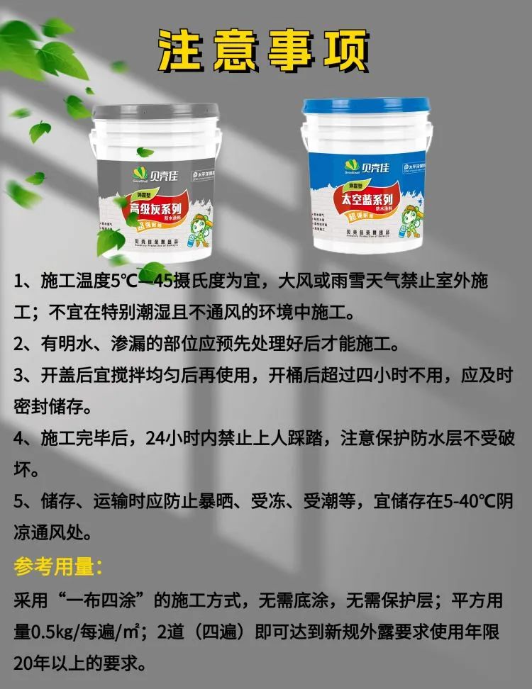 貝殼佳太空藍、高 級灰系列外露防水涂料采用獨創的12道生產工藝,采用6道研磨工藝,使得填充精細骨料達到800目以上;