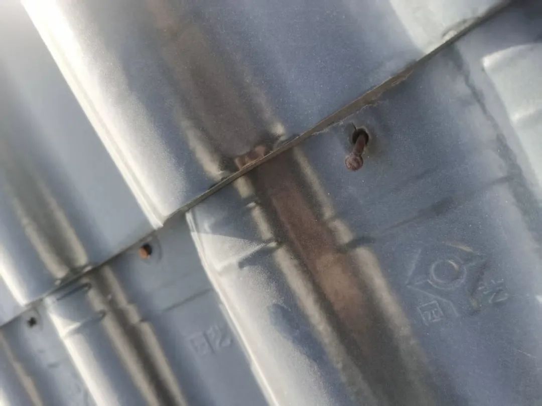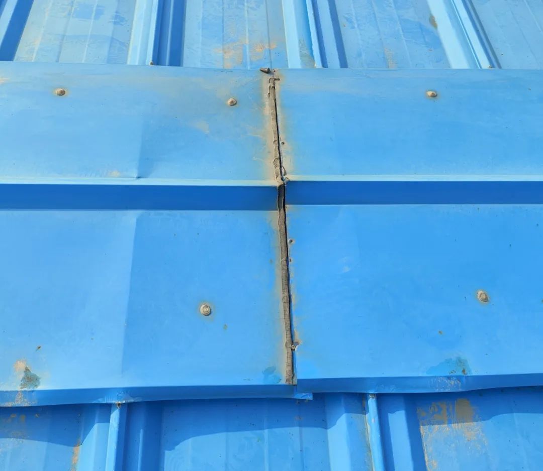 2. 彩鋼板搭接縫翹曲、破損、裂縫、整體銹蝕