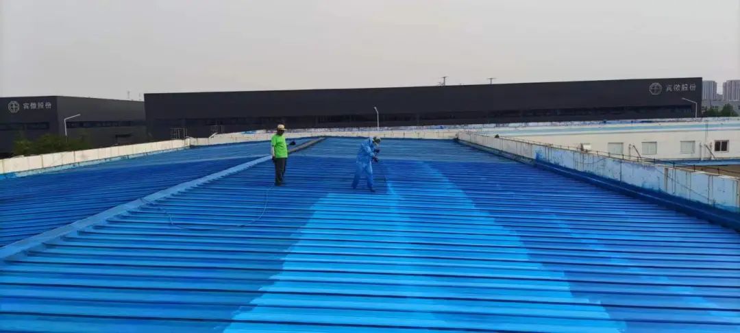 彩鋼瓦屋面清洗干凈后晾干,將轉銹劑均勻涂刷在彩鋼瓦表面。待轉銹劑與基層充分反應完畢后方可進行下一步,充分反應時間以12小時為zui佳,不宜超過18小時,防止屋面出現灰塵隔層,影響后期成膜效果。